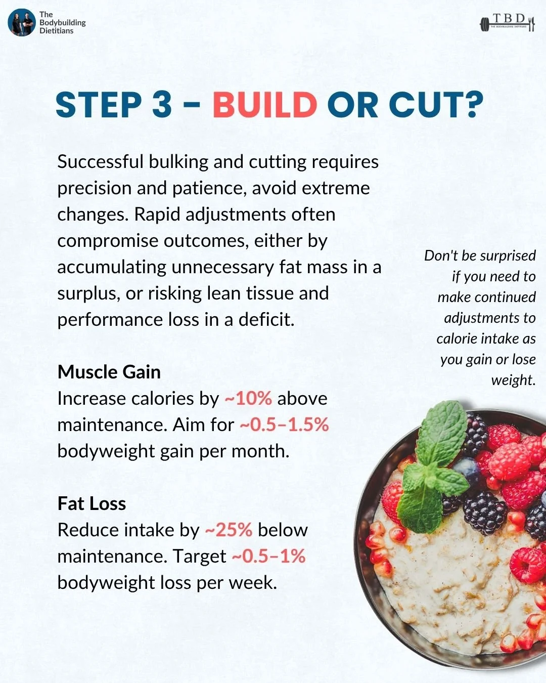 Avoid extremes. Gaining too fast usually means excess fat gain, while cutting too aggressively risks muscle loss and poor performance.