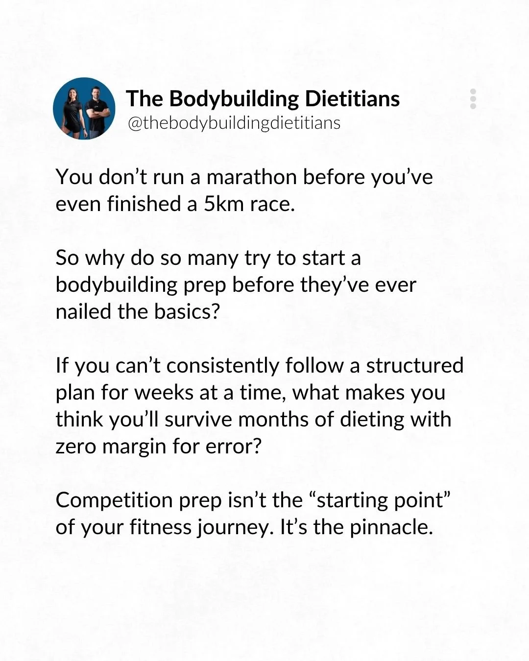 Yet, it’s not uncommon to see first-time competitors try to bypass the fundamentals and jump straight into a prep without proving they can handle the basics. This is a recipe for frustration, burnout, and in some cases, long-term damage to health or mindset.